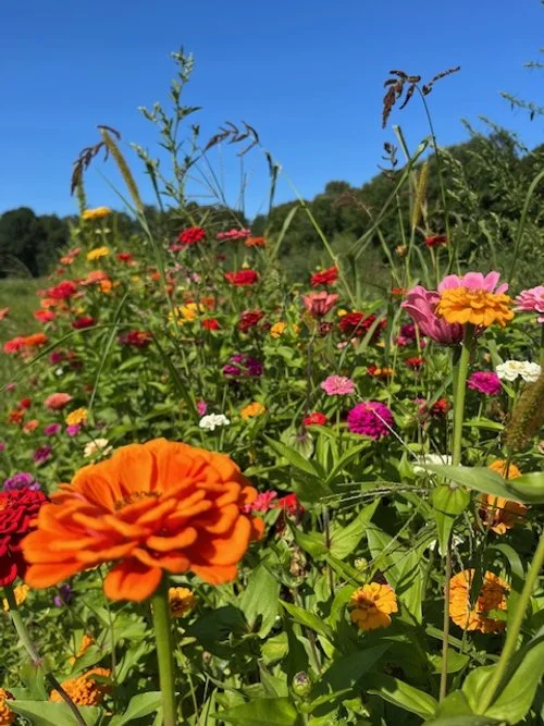 In addition, we have an entire field of Zinnias and Dahlias that we invite visitors to walk through and pick their own bouquets!